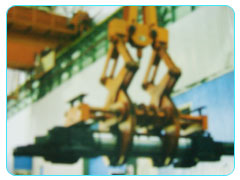轧辊吊具有单辊或双辊吊具,有单腿,双腿,带平衡支架三种形式,采用旋转自动启闭和机械式自动启闭,可适用于不同直径长度的轧辊,使用方便灵活。