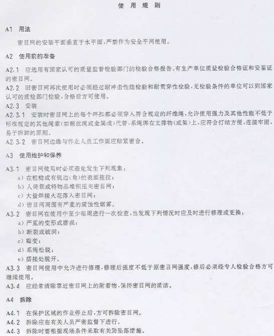 ☆ 垂直于水平面安装用于防止人员坠落及坠物伤害的网