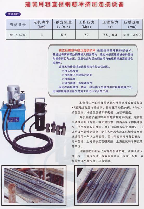 ★ 本机床可挤压连接Ф16-Ф40mm 的带肋冷轧或热轧钢筋